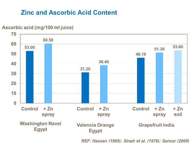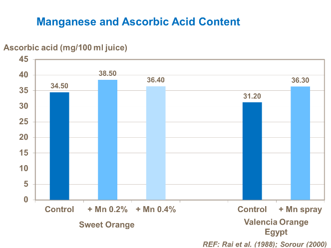 Good crop nutrition with balanced supplies of potassium, boron, copper, iron, manganese, molybdenum and zinc provides fruit with higher ascorbic acid (Vitamin C) content.