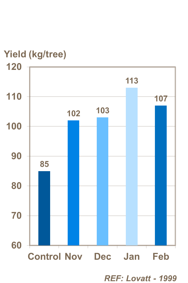 An annual program of fertilizer-N is needed to ensure long-term productivity by replenishing nitrogen, which is removed by harvested fruit. Much of this yield increase comes from increasing fruit number, but improvements in fruit weight have also been observed from use of nitrogen.