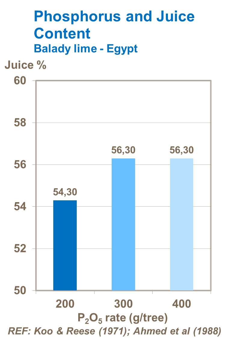 Phosphorus has a positive effect on juice content of the fruit.