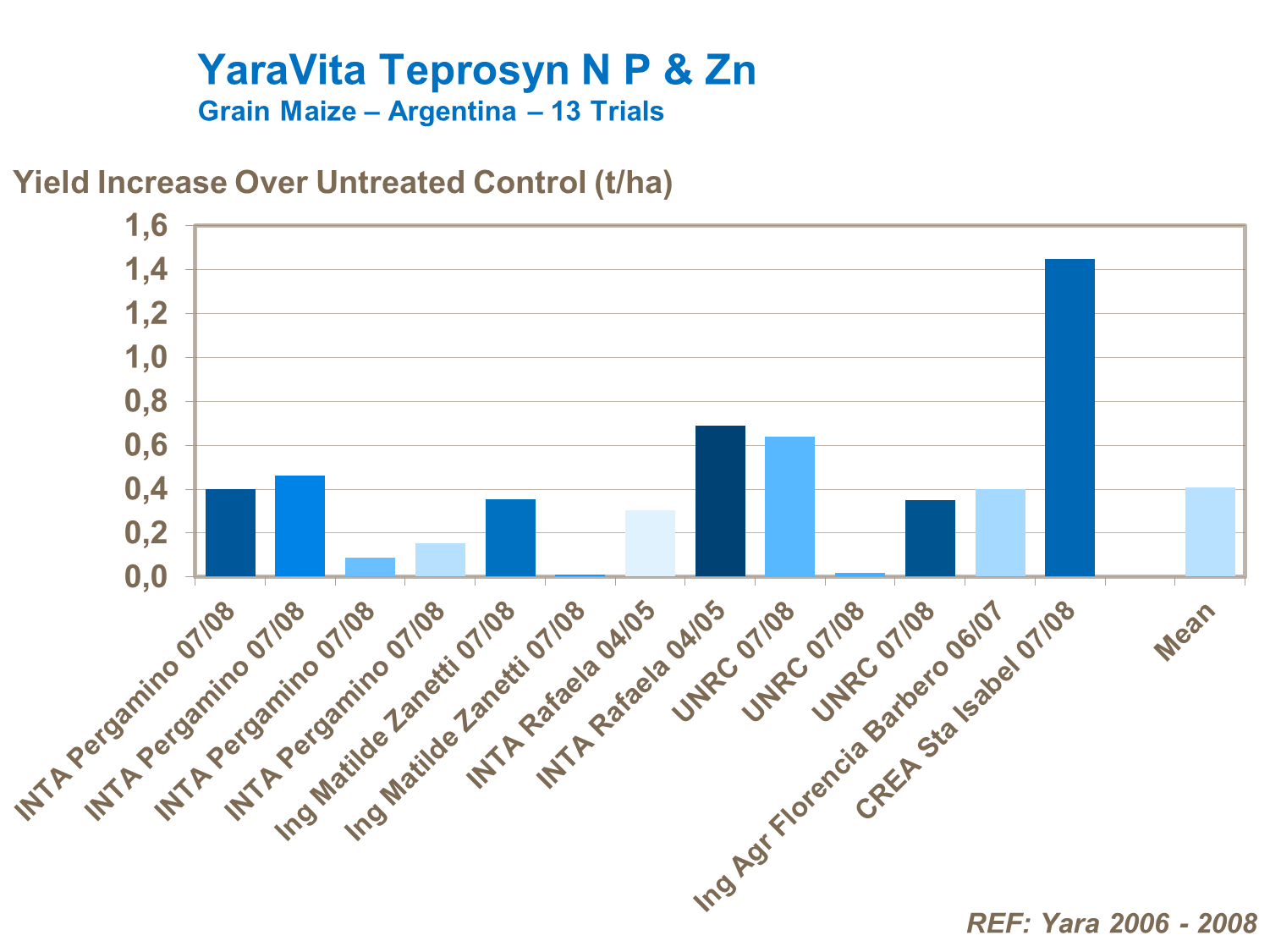 This type of response has lead to positive yield increases averaging 0,4t/ha in grain maize in Argentina.