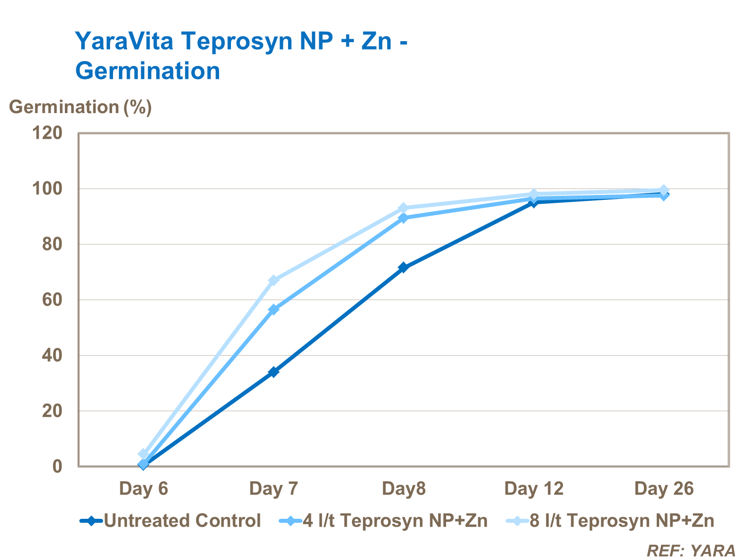 For example, trials with Teprosyn NP + Zn on maize have provided improvements in seed germination, establishment and subsequent growth.