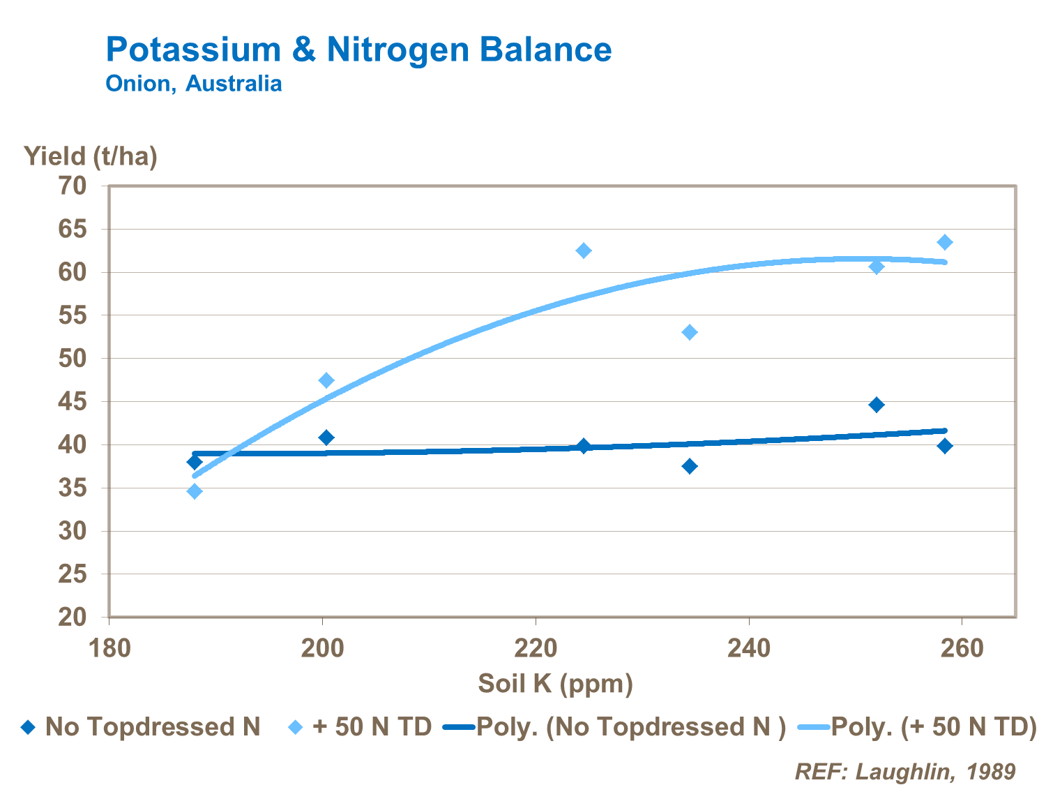 Potassium is particularly important where high N rates have been applied, as trials in Australia show. In these situations it helps maintain yield by increasing dry matter and sugar accumulation in the bulb.