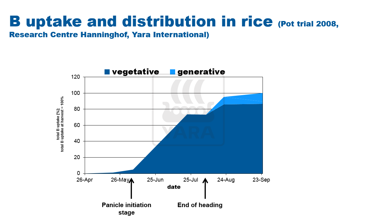 • If plants are B deficient during reproductive stage, panicle and spikelet formation, grain set and grain filling are depressed. (Lordkaew et al. 2013)