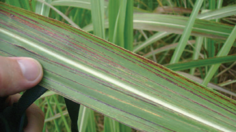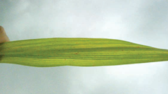 A manganese deficient sugarcane can also show pale stripes between the veins running longitudinally, shown on the youngest leaves first. These stripes generally start from the middle of the leaf and run to the tip. Leaf blades may split or fray in the wind and under severe deficiency the entire leaf becomes bleached.