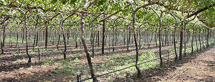 In some regions, e.g. desert areas of South Africa, 2000mm of irrigation water can be applied every year. Application of 600mm irrigation water is the norm in Spain. Production is largely influenced by amount of water available between flowering and veraisons, however, shortage of water at any growth stages will result in reduction of yield and quality. Soil water management is critical to produce good quality berry. When the soil is too dry, table grape yield and quality are reduced.