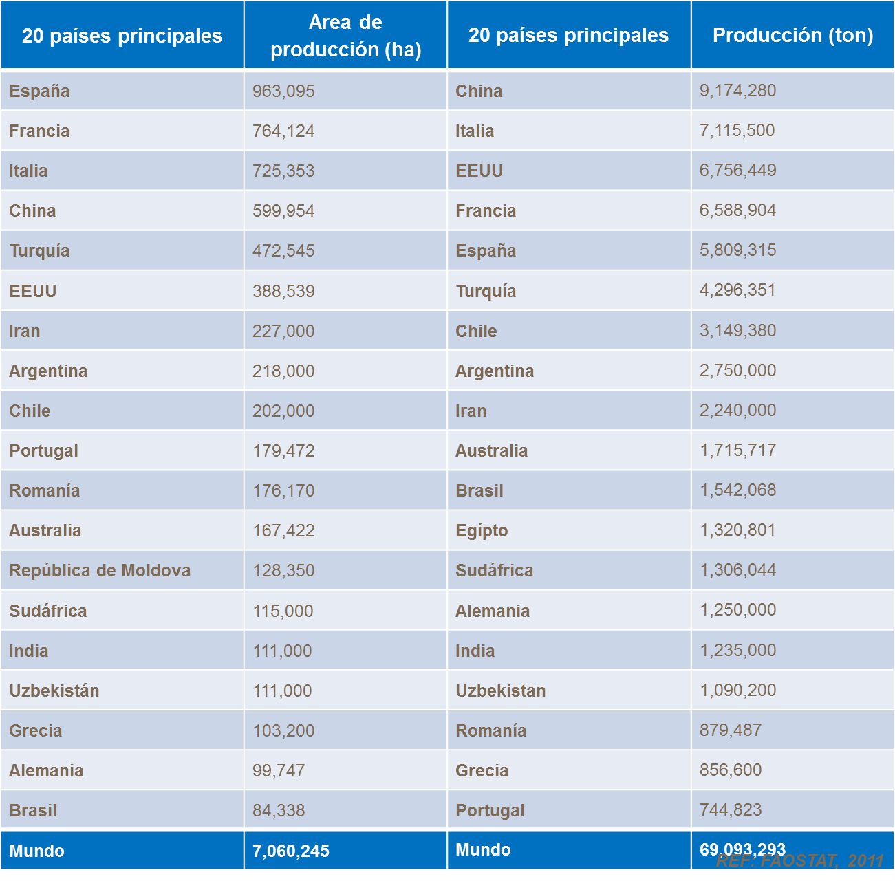 The biggest producers of table grapes are China, Turkey and Italy. These and other Northern Hemisphere countries account for nearly 70% of all table grape production. China uses virtually all of the 3.8 million tonnes of table grapes it produces. Turkey and Italy are major exports to largely European countries.