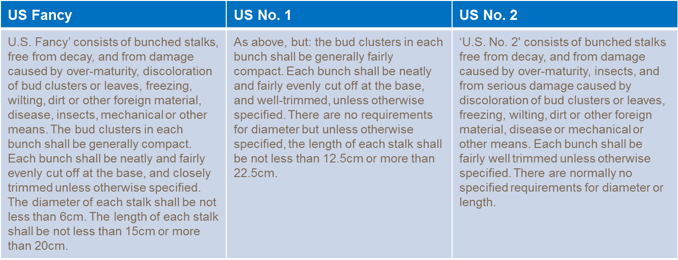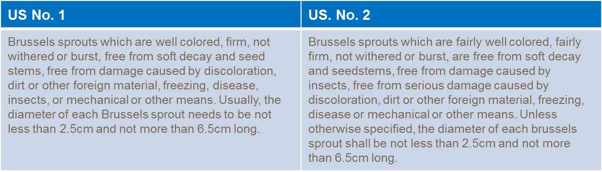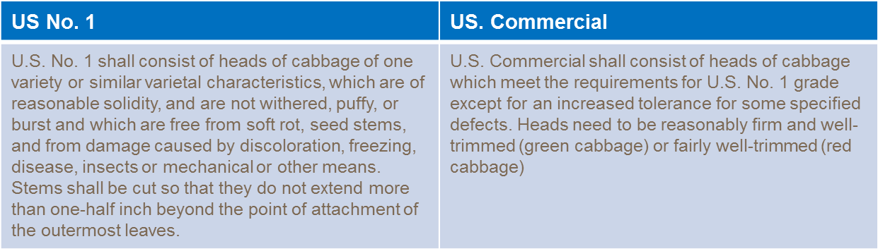 In Europe, Canada, and the USA – as laid out below as an example - there are two basic grades for round cabbages: