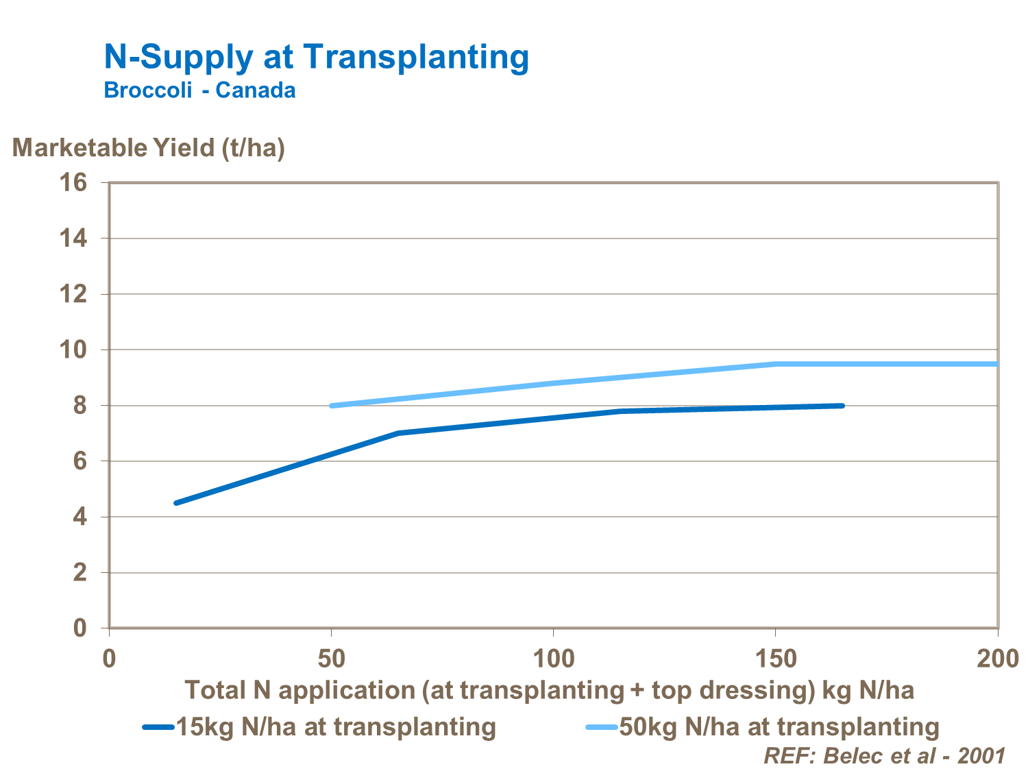 Fast growing types (e.g. cauliflower and broccoli) require a high nitrogen supply as they have high nitrogen uptake rates and a high nitrogen requirement, particularly during early growth